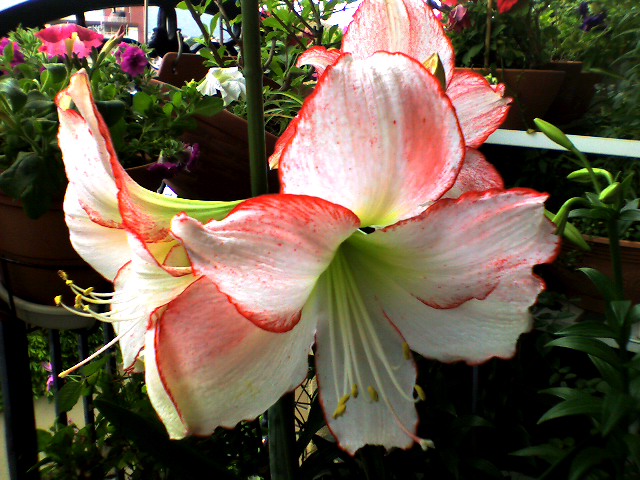 | たまにはFF以外のものでもw アマリリス(リアル) 上ふたつが親で、満開だと花が4こ 下ふたつが親の種から育った子で今年初めて咲きますた!まだ満開でも花は2こ 毎年この季節になるとアマリリスが咲くのが楽しみだお(*´∀`) |